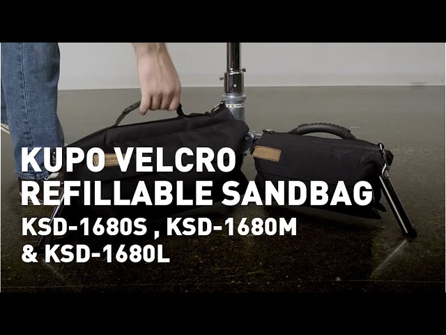 Sand bags are an indispensible safety measure on any set to ensure that stands don't tip over or damage expensive equipment and cause injury, resulting in expensive downtime. Kupo stand bags feature a saddlebag design that is ideally suited to drape over stand legs and boom arms. It ships empty so that you can fill it withyour choice of material translating to much lower shipping costs. Made of sturdy 1000D cordura nylon for long life and thick plastic internal liner bags help keep dust in and water out. It also comes withdouble velcro design v no stand will leak out of the bags. This stand back features a reinforced handle sewn into both sides of the bag using a box and cross pattern. Also a fly away handle is equipped allowing you to drape over light stand legs. The loading weight is on the blue label for easy identification. This is a large bag withbutterfly lift handle s. Dimension: 14.2" (36cm) x 11" (28cm) x 2.4" (6cm) max load: 35lbs (16kg).