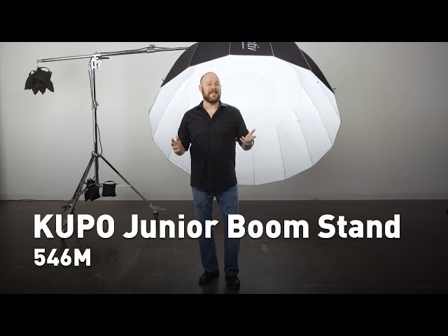 Il Kupo Junior Boom Stand è un supporto incredibilmente versatile che può essere convertito da uno stativo per luci standard a un braccio boom junior semplicemente estraendo la colonna centrale dallo stativo e utilizzando il collare girevole per posizionare il braccio. Costruito in acciaio cromato e dotato di gambe a sezione quadrata, il braccio può supportare 29,9 kg alla sua estensione minima di 1,5 m e 8 kg alla sua estensione massima di 2,68 m. Perfetto per un corpo illuminante di medie dimensioni con un softbox o un ombrello collegato. La manopola in alluminio massiccio, abbinata a un bullone inossidabile, garantisce un funzionamento affidabile e duraturo. Il montante pressofuso è dotato di un inserto heli-coil in acciaio inox, che fornisce un foro filettato di lunga durata. La fusione a ragno superiore comprende un gancio per riporla comodamente sulla rastrelliera. È inoltre dotato di un dispositivo ad anello per il kit di rinforzo del vento. Lo stativo junior è inoltre dotato di una gamba di livellamento per bilanciare i carichi su terreni irregolari, il che lo rende adatto sia al campo che allo studio.